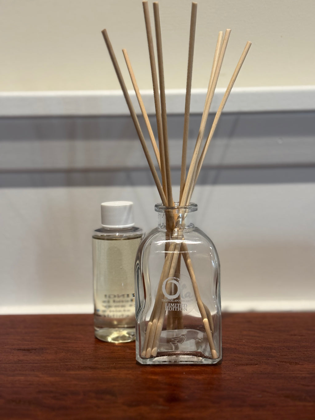 Bring the relaxing ambiance of a Hawaiian paradise into your home with this special holiday fragrance. Our reed diffuser is thoughtfully presented in a stylish organza bag with a hang tag, making it a lovely addition to any room.